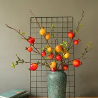ענף רימון מלאכותי באורך 96 ס\\\"מ בצבעים אדום/צהוב/ירוק/כתום עם 6 ראשים לקישוט הבית לחג המולד וחג ההודיה